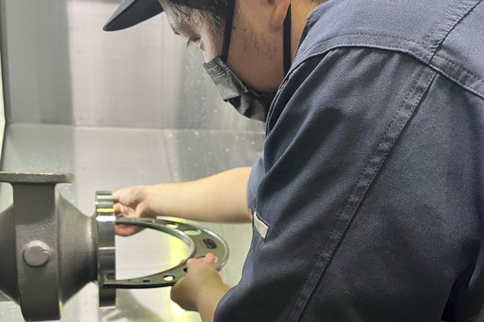 シリンダーゲージによる寸法測定 マイクロゲージによる寸法測定 加工プログラム作成中 段取り時のプログラム確認中 マシニング加工中風景 組み立て作業 エナメル線コイル修理 巻き直し作業 ポリ巻線コイル組み立て作業 倉庫業務 倉庫からクレーンでの出庫作業 フォークリフトでの荷降ろし作業